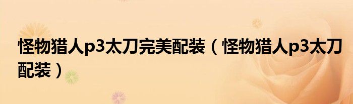 大家好,我是小科,我来为大家解答以上问题。怪物猎人p3太刀完美配装,怪物猎人p3太刀配装很多人还不知道,现在让我们一起来看看吧!