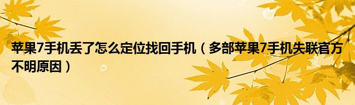 大家好,我是小科,我来为大家解答以上问题。苹果7手机丢了怎么定位找回手机,多部苹果7手机失联官方不明原因很多人还不知道,现在让我们一起来看看吧!