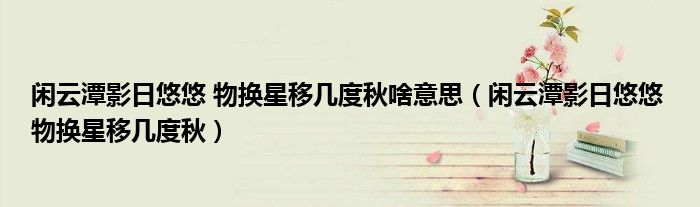 大家好,我是小科,我来为大家解答以上问题。闲云潭影日悠悠 物换星移几度秋啥意思,闲云潭影日悠悠 物换星移几度秋很多人还不知道,现在让我们一起来看看吧!