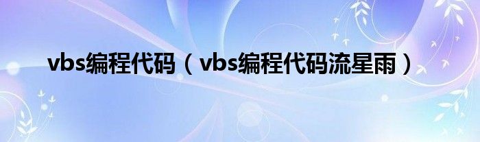 大家好,小联来为大家解答以上的问题。vbs编程代码,vbs编程代码流星雨这个很多人还不知道,现在让我们一起来看看吧!