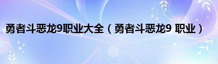 大家好,我是小科,我来为大家解答以上问题。勇者斗恶龙9职业大全,勇者斗恶龙9 职业很多人还不知道,现在让我们一起来看看吧!