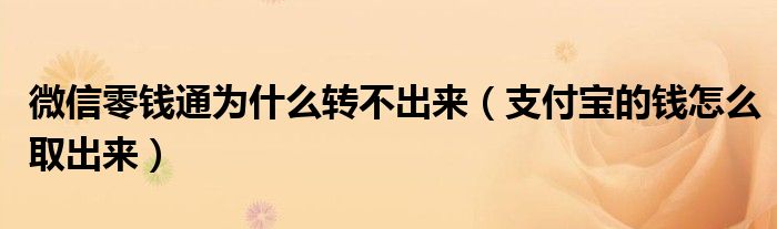 今天小饼为大家解答以下问题,关于微信零钱通为什么转不出来,支付宝的钱怎么取出来很多人还不知道,现在让我们一起来看看吧!