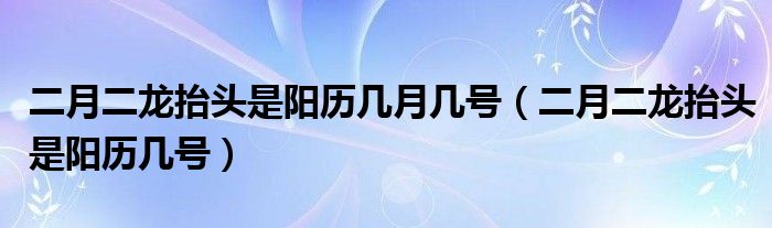大家好,小夏来为大家讲解下。二月二龙抬头是阳历几月几号,二月二龙抬头是阳历几号很多人还不知道,现在让我们一起来看看吧!