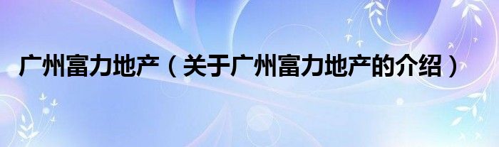 广州富力地产(关于广州富力地产的介绍)