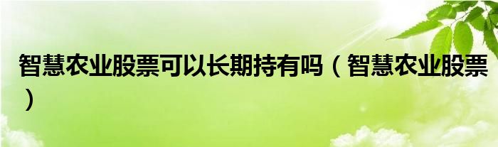 智慧农业股票可以长期持有吗(智慧农业股票)