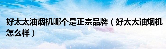 好太太油烟机哪个是正宗品牌(好太太油烟机怎么样)