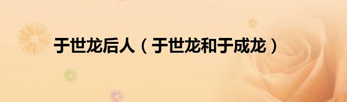 于世龙后人(于世龙和于成龙)