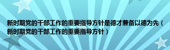 新时期党的干部工作的重要指导方针是德才兼备以德为先(新时期党的干部工作的重要指导方针)