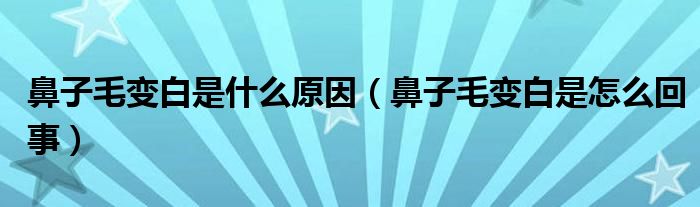 1、鼻子毛和头发是一样的,变白都和年龄、身体状况相关,在年龄逐渐增大后都出现毛发变白、头发变白、鼻毛变白,甚至在老年时连眉毛也会出现变白,属于随年龄增长生理退化的现象。