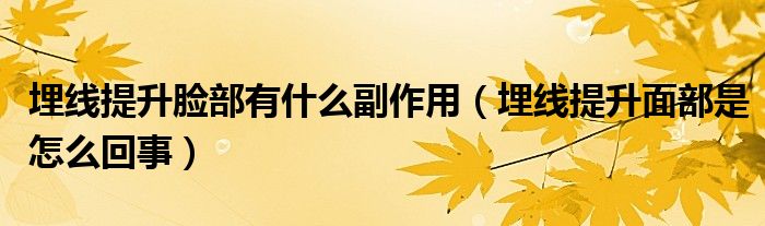 大家好,乐天来为大家解答以下的问题,埋线提升脸部有什么副作用,埋线提升面部是怎么回事很多人还不知道,现在让我们一起来看看吧!