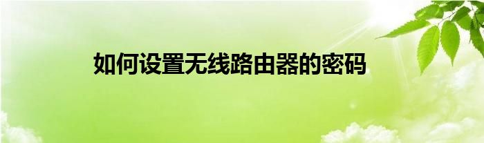 如何设置无线路由器的密码