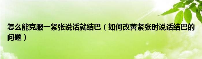 大家好,乐天来为大家解答以下的问题,怎么能克服一紧张说话就结巴,如何改善紧张时说话结巴的问题很多人还不知道,现在让我们一起来看看吧!