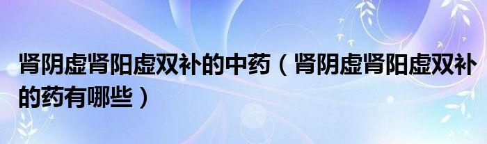 肾阴虚肾阳虚双补的中药(肾阴虚肾阳虚双补的药有哪些)