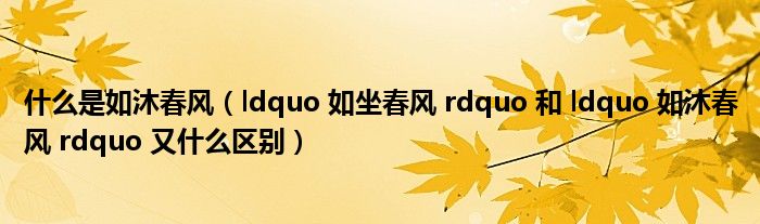 关于什么是如沐春风,ldquo 如坐春风 rdquo 和 ldquo 如沐春风 rdquo 又什么区别这个很多人还不知道,今天菲菲来为大家解答以上的问题,现在让我们一起来看看吧!