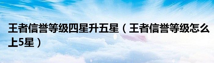 大家好,小晋来为大家解答以下问题,关于王者信誉等级四星升五星,王者信誉等级怎么上5星很多人还不知道,今天让我们一起来看看吧!
