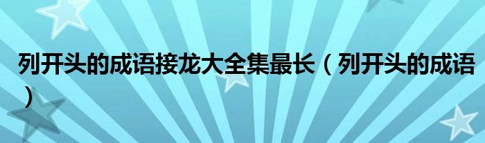 大家好,小晋来为大家解答以下问题,关于列开头的成语接龙大全集最长,列开头的成语很多人还不知道,今天让我们一起来看看吧!