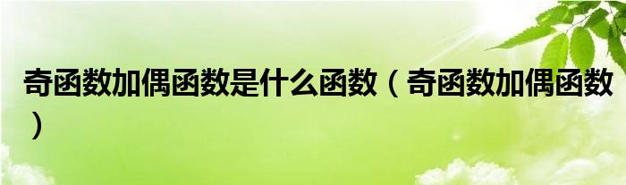 大家好,小晋来为大家解答以下问题,关于奇函数加偶函数是什么函数,奇函数加偶函数很多人还不知道,今天让我们一起来看看吧!