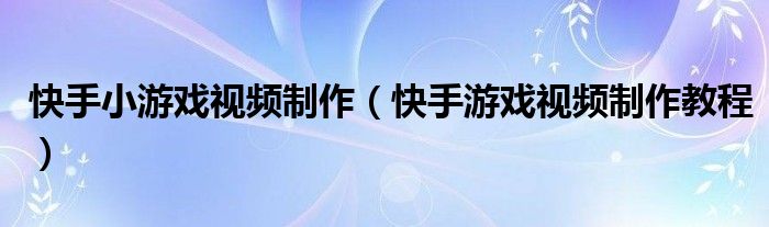快手小游戏视频制作(快手游戏视频制作教程)
