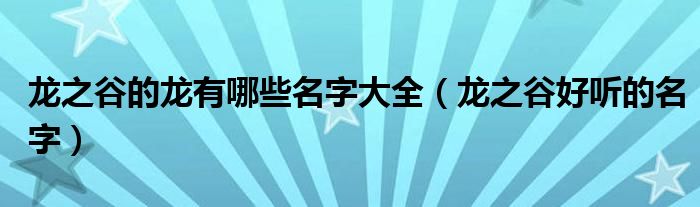 大家好,来宝来为大家解答以下问题,龙之谷的龙有哪些名字大全,龙之谷好听的名字很多人还不知道,今天让我们一起来看看吧!