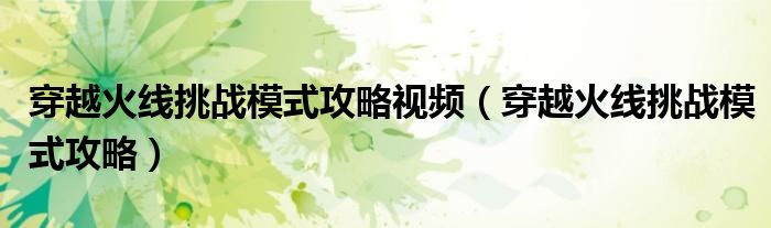 以上是分享穿越火线挑战模式实战经验的介绍。
