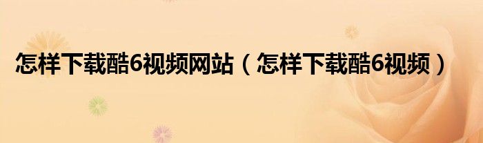 大家好,来宝来为大家解答以下问题,怎样下载酷6视频网站,怎样下载酷6视频很多人还不知道,今天让我们一起来看看吧!