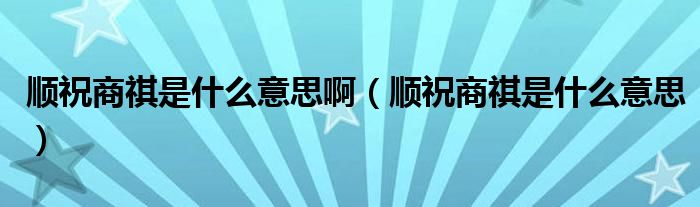 关于顺祝商祺是什么意思啊,顺祝商祺是什么意思这个很多人还不知道,今天菲菲来为大家解答以上的问题,现在让我们一起来看看吧!