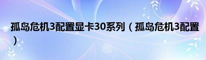 大家好,来宝来为大家解答以下问题,孤岛危机3配置显卡30系列,孤岛危机3配置很多人还不知道,今天让我们一起来看看吧!