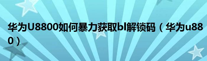 大家好,来宝来为大家解答以下问题,华为U8800如何暴力获取bl解锁码,华为u880很多人还不知道,今天让我们一起来看看吧!