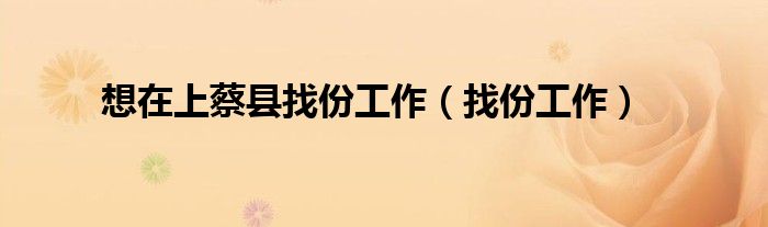 关于想在上蔡县找份工作,找份工作这个很多人还不知道,今天菲菲来为大家解答以上的问题,现在让我们一起来看看吧!