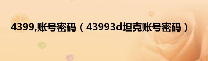 关于4399,账号密码,43993d坦克账号密码这个很多人还不知道,今天菲菲来为大家解答以上的问题,现在让我们一起来看看吧!