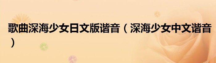关于歌曲深海少女日文版谐音,深海少女中文谐音这个很多人还不知道,今天菲菲来为大家解答以上的问题,现在让我们一起来看看吧!