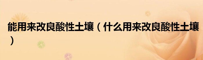 能用来改良酸性土壤(什么用来改良酸性土壤)