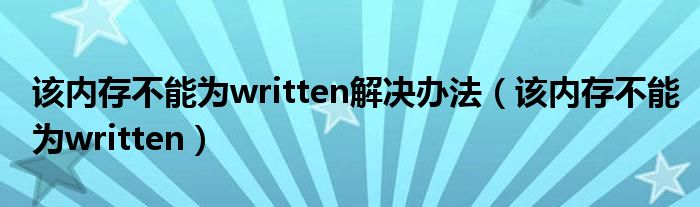 大家好,小飞来为大家解答以上问题,该内存不能为written解决办法,该内存不能为written很多人还不知道,现在让我们一起来看看吧!