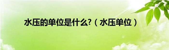 关于水压的单位是什么?,水压单位这个很多人还不知道,今天菲菲来为大家解答以上的问题,现在让我们一起来看看吧!