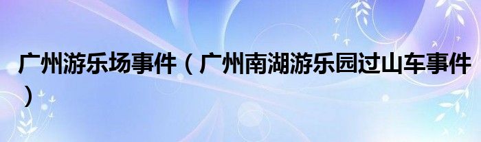 关于广州游乐场事件,广州南湖游乐园过山车事件这个很多人还不知道,今天菲菲来为大家解答以上的问题,现在让我们一起来看看吧!