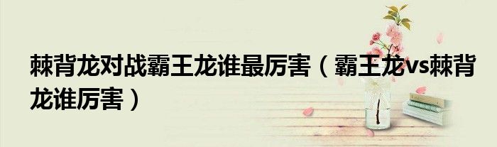 关于棘背龙对战霸王龙谁最厉害,霸王龙vs棘背龙谁厉害这个很多人还不知道,今天菲菲来为大家解答以上的问题,现在让我们一起来看看吧!