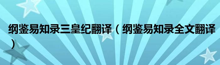 纲鉴易知录三皇纪翻译(纲鉴易知录全文翻译)