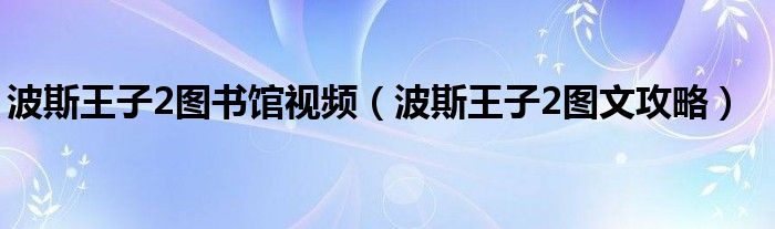 波斯王子2图书馆视频,波斯王子2图文攻略这个很多人还不知道,小飞来为大家解答以上的问题。现在让我们一起来看看吧!