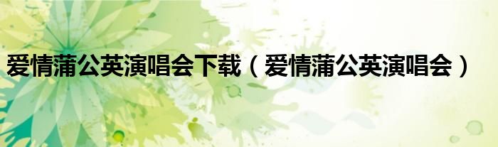 爱情蒲公英演唱会下载,爱情蒲公英演唱会这个很多人还不知道,小飞来为大家解答以上的问题。现在让我们一起来看看吧!