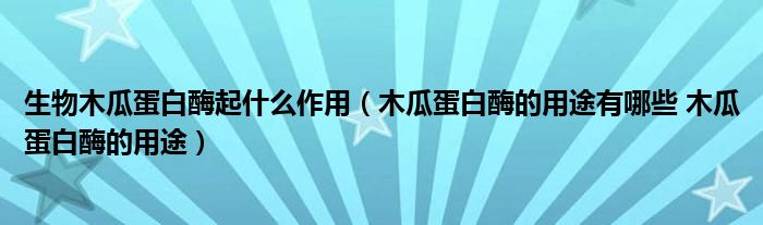 关于生物木瓜蛋白酶起什么作用,木瓜蛋白酶的用途有哪些 木瓜蛋白酶的用途这个很多人还不知道,今天菲菲来为大家解答以上的问题,现在让我们一起来看看吧!