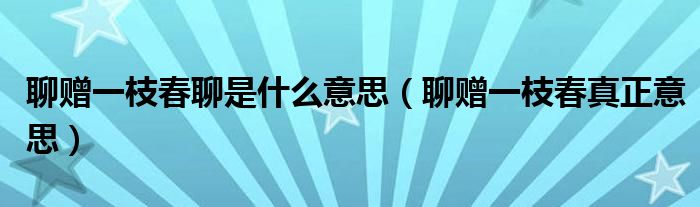 聊赠一枝春聊是什么意思,聊赠一枝春真正意思这个很多人还不知道,小飞来为大家解答以上的问题。现在让我们一起来看看吧!
