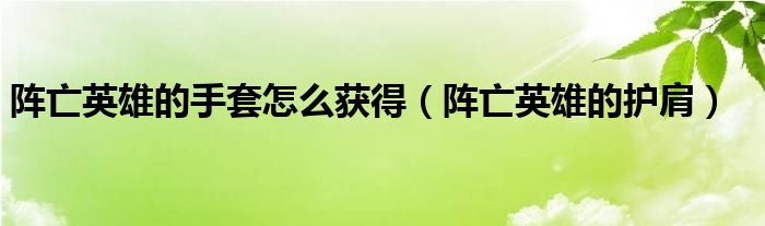 阵亡英雄的手套怎么获得,阵亡英雄的护肩这个很多人还不知道,小飞来为大家解答以上的问题。现在让我们一起来看看吧!