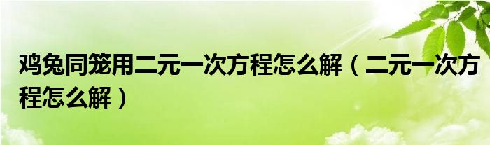 关于鸡兔同笼用二元一次方程怎么解,二元一次方程怎么解这个很多人还不知道,今天菲菲来为大家解答以上的问题,现在让我们一起来看看吧!