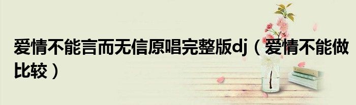 爱情不能言而无信原唱完整版dj,爱情不能做比较这个很多人还不知道,小飞来为大家解答以上的问题。现在让我们一起来看看吧!