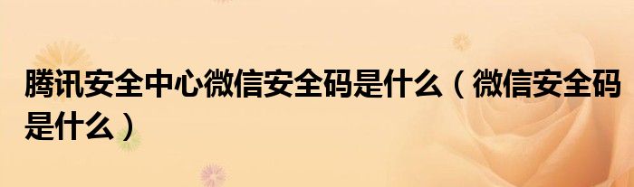 腾讯安全中心微信安全码是什么(微信安全码是什么)