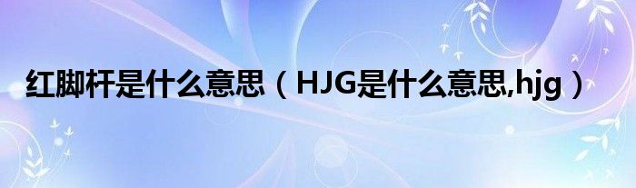 大家好,小常来为大家解答以上问题。红脚杆是什么意思,HJG是什么意思,hjg很多人还不知道,现在让我们一起来看看吧!