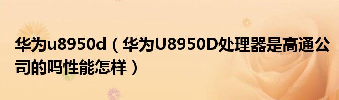1,华为U8950D处理器是高通公司的吗?性能怎样?:u8950d是2012年出的旧机型了,采用高通 骁龙Snapdragon MSM8225 双核处理器,在现在来说性能低端。