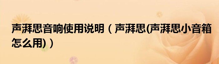 大家好,小常来为大家解答以上问题。声湃思音响使用说明,声湃思(声湃思小音箱怎么用)很多人还不知道,现在让我们一起来看看吧!