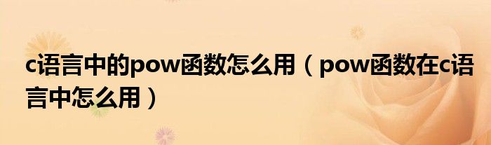关于c语言中的pow函数怎么用,pow函数在c语言中怎么用这个很多人还不知道,今天菲菲来为大家解答以上的问题,现在让我们一起来看看吧!