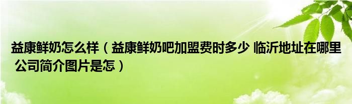 关于益康鲜奶怎么样,益康鲜奶吧加盟费时多少 临沂地址在哪里 公司简介图片是怎这个很多人还不知道,今天菲菲来为大家解答以上的问题,现在让我们一起来看看吧!